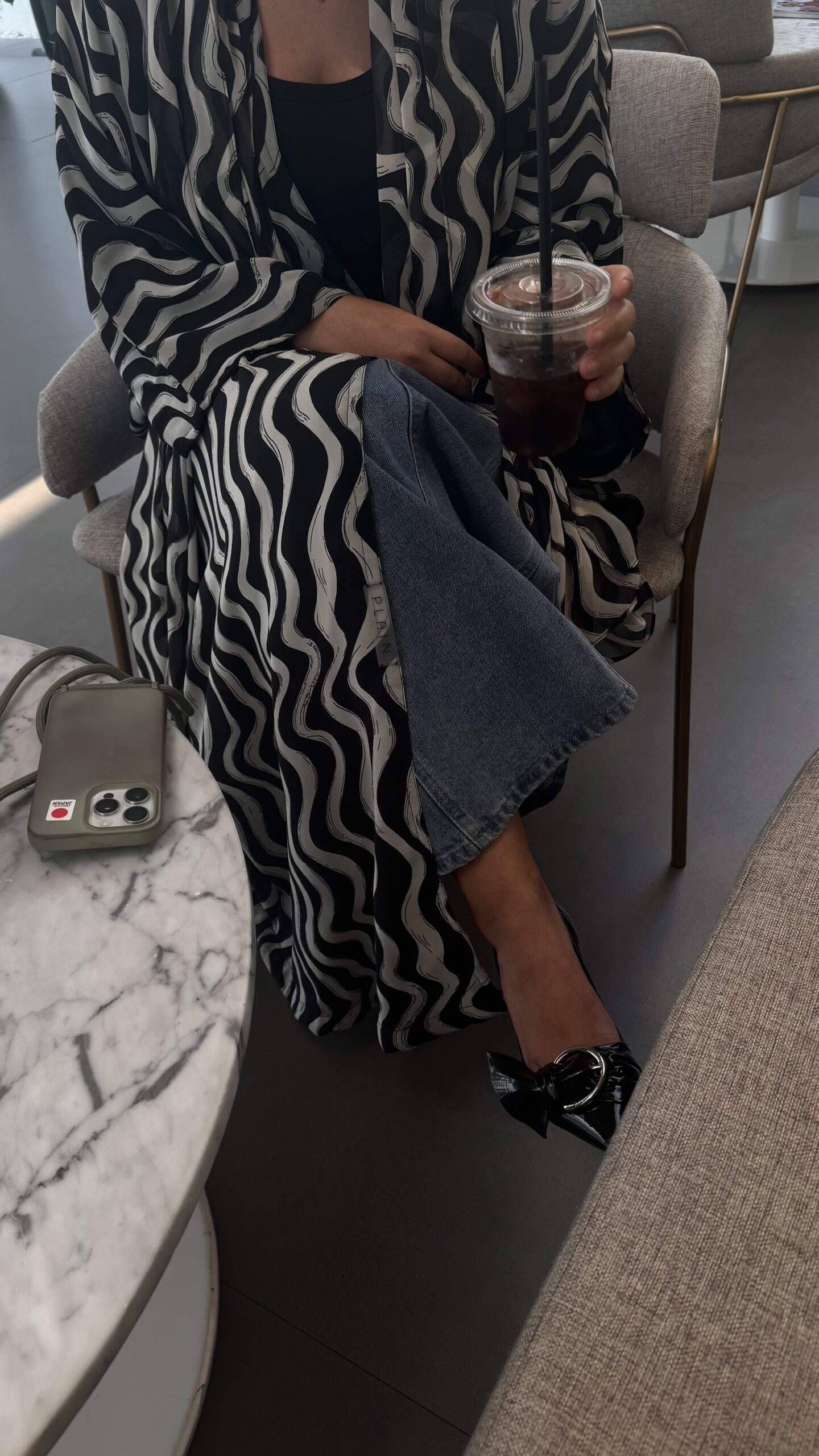 This elegant chiffon abaya features a striking design with contrasting off-white and black stripes, offering a modern twist on a classic silhouette. The flowing chiffon fabric drapes beautifully, providing a soft and lightweight feel, while the bold stripes add a touch of sophistication and visual interest.