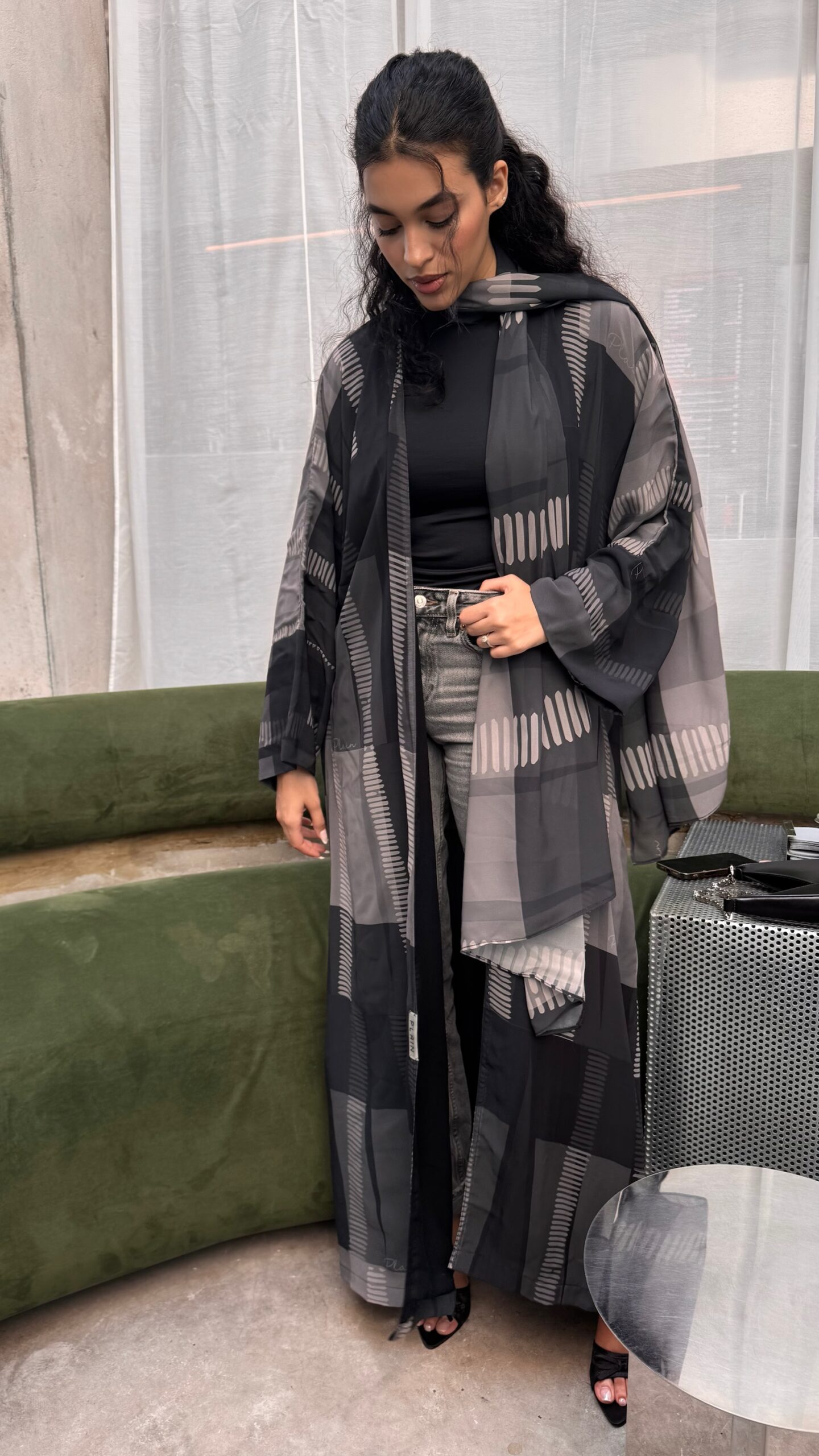 Limited Edition..chiffon printed abaya .. plain scarf