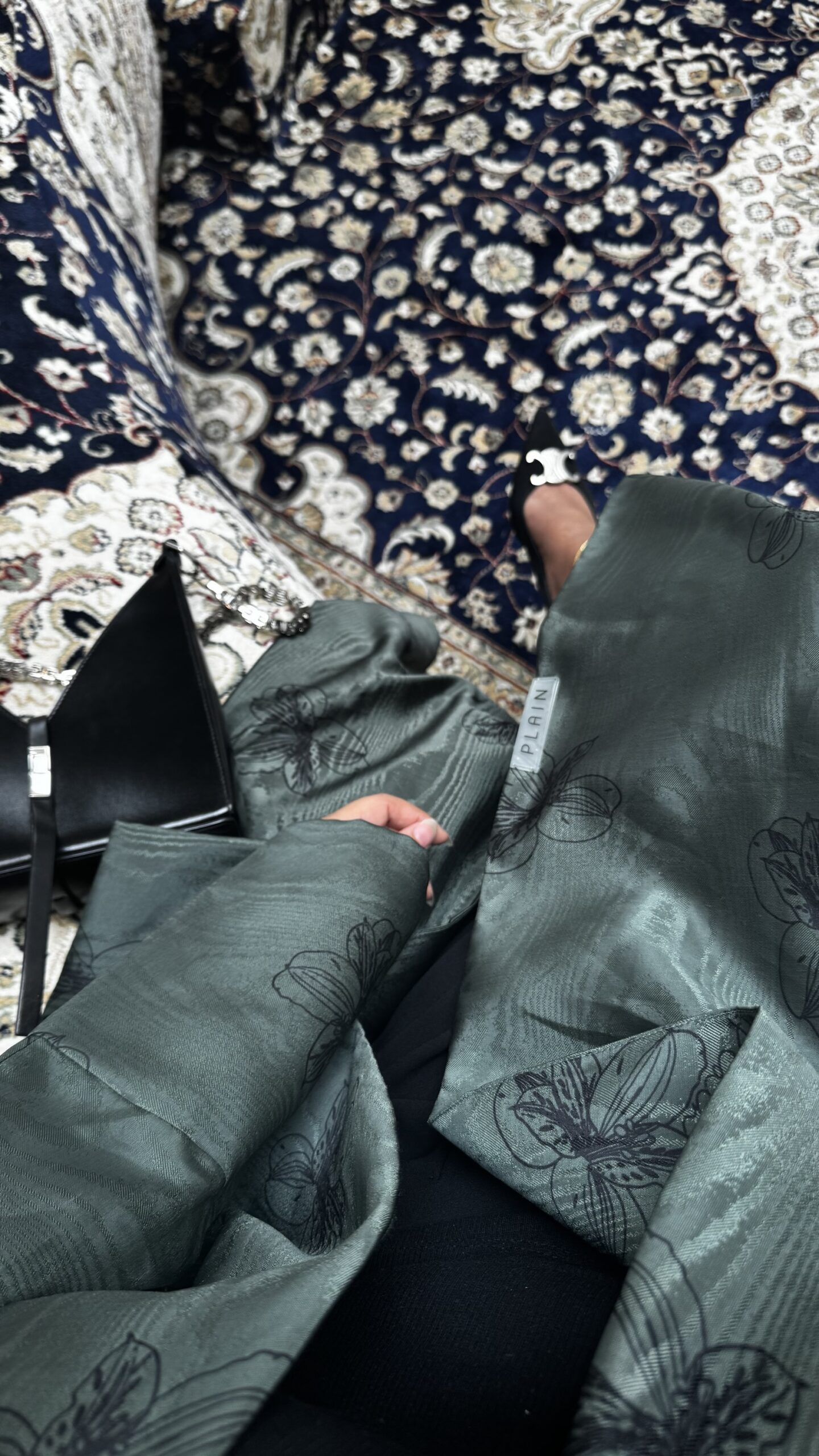 brand-exclusive pattern printed on Raw soft silk withplain matching head scarf